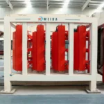 (1)Crossing cutting steel wire 5mm carry, cylinder tightening, ruler installation clear and stable; A total of 13 groups of standard longitudinally cut steel columns are set (can be adjusted according to needs), the upper and lower ends are fixed, the column distance is 660mm; Raw materials to meet the requirements of the cutting machine with horizontal die-cutting 50MM sheet;